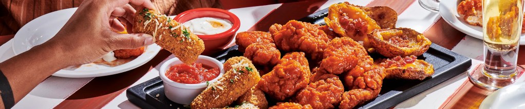 Salsas a elegir: BBQ, Buffalo, Fridays™ Whiskey-Glaze o Garlic Parmesan,